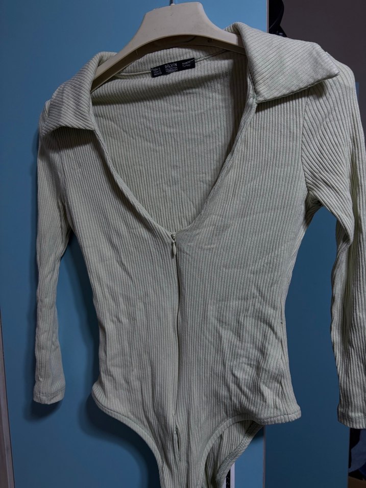 , V yakalı ve fermuarlı bu bluz, uzun kollu ve vücuda oturan kesime sahiptir. Normal midi boyunda,. Yumuşacık sorununu çektim ufak sökülmüş giyildiğinde içeride kalır yoksa da ufak tadilatta hallolurn