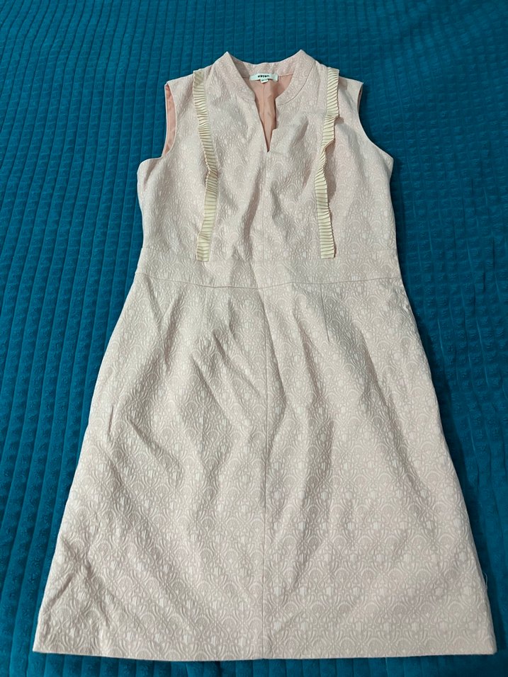 V yakalı, kolsuz beyaz midi elbise, vücuda oturan kesimi ve hafif fırfır detaylarıyla. Bohem tarzda, günlük kullanıma uygun.