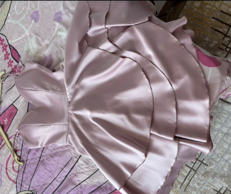 V yaka ve fırfır detaylı, ince askılı kısa ve abiye elbise. Koyu pembe renkte, düğünler ve parti için uygun bir tasarım.