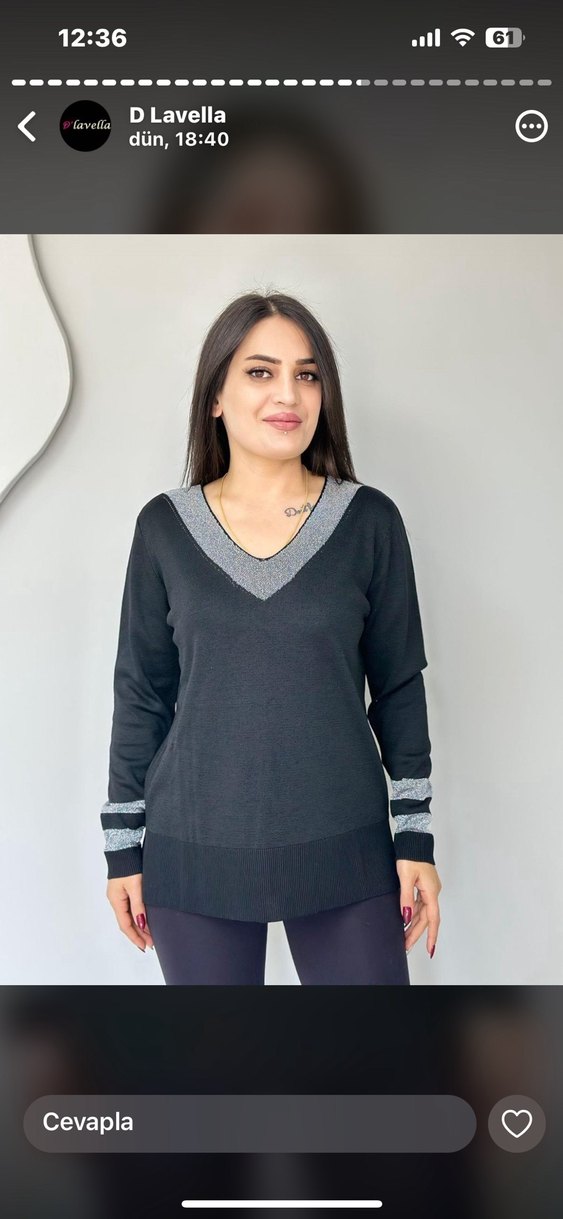 V Yaka Gri Detaylı Siyah Kadın Kazak