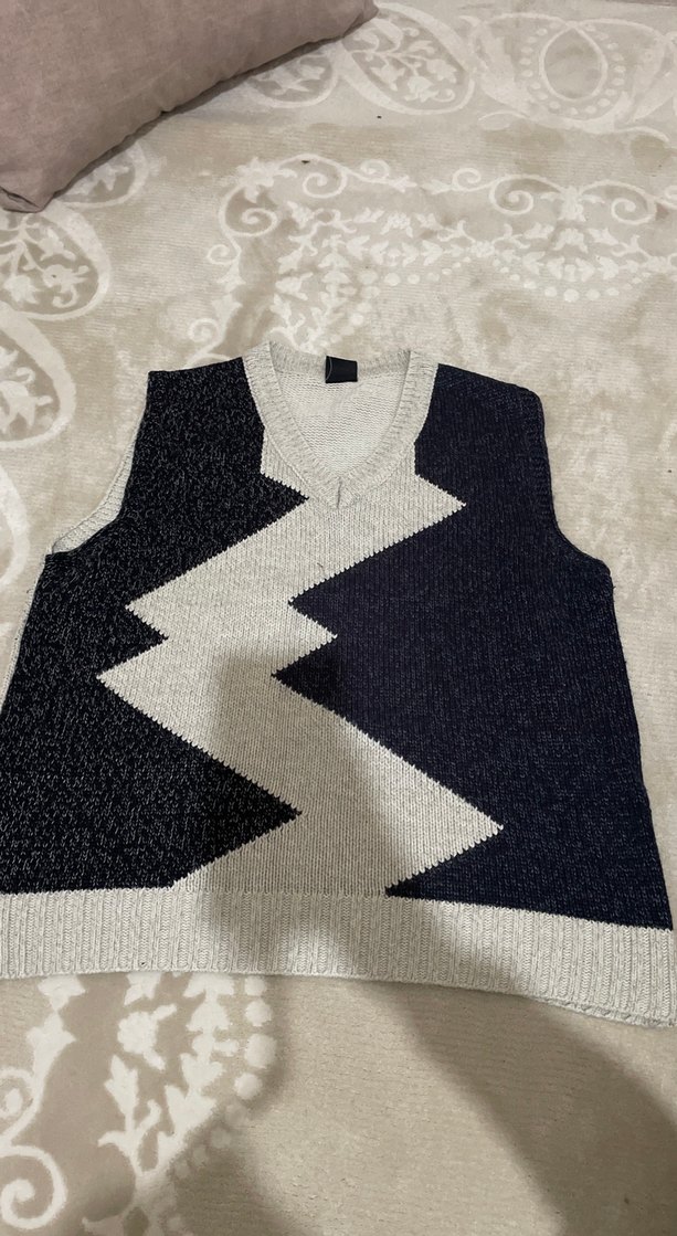 V yaka, kolsuz ve bol kesim örgü süveter. Gri tonlarda cesur zigzag desenli, rahat sokak stili için uygun.