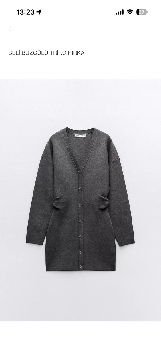V yaka gri hırka görünümlü yanları büzgülü düğmeli triko elbise düğmeleri süstür hırka olmamaktadır