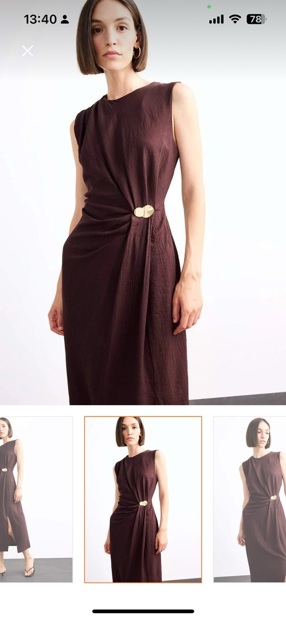 Kahverengi, V yakalı ve askılı kollu uzun elbise, ipeksi dokusu ve sade desensiz tasarımıyla günlük kullanım için uygundur. ✨ bedeni dar normalde 36-38 bedenim 42 anca oldu bir kez giydim.