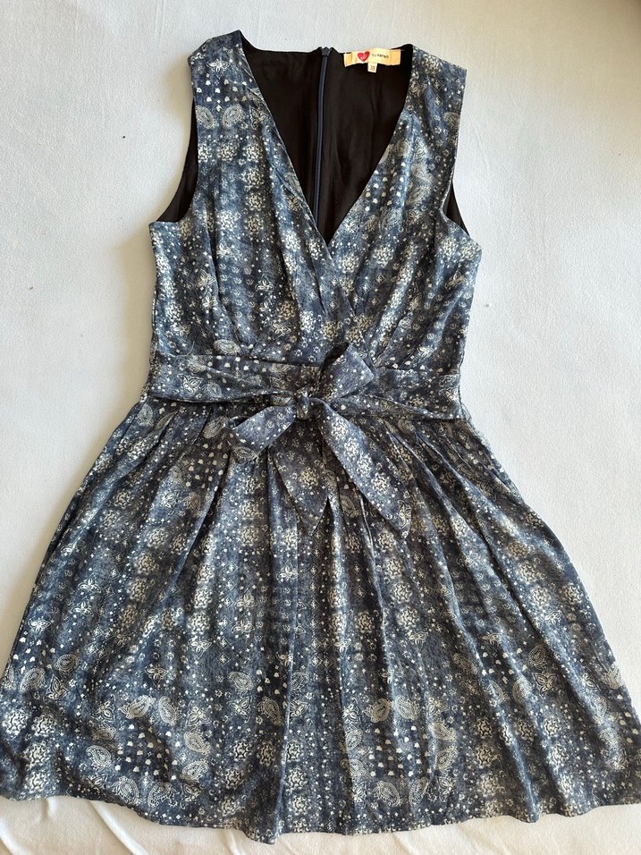 V yaka, kemerli, mavi mini elbise, batik desenli ve bohem stil. Koton’dan alındı hiçbir defosu vs yok 1-2 kez kullanıldı