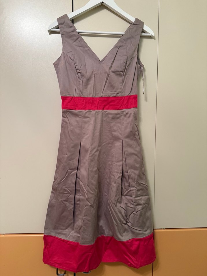 orijinal park bravo Kolsuz, V yakalı, kemerli ve midi boy bej elbise.