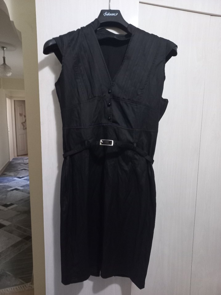 yandan fermuarlı kemerli ofis elbisesi hiç giyilmedi mağazada kalan ürünlerden iki kol arasi 44 boy 91 cm 42 beden yazıyor ama bence 40 bedene uygun ölçüleri dikkate alın TEKLİF VERİP ALMAYANLARİ ENGELLİYORUM