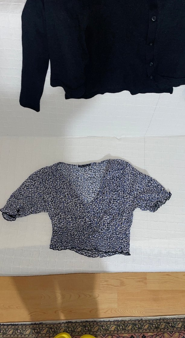 V Yaka, Kısa Kollu, Desenli Mini Bluz