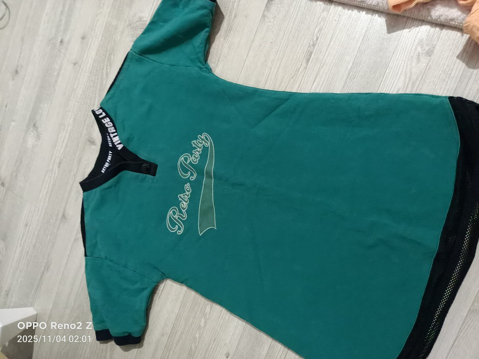 Turkuaz renkli, kısa kollu, V yakalı kiz cocuk yesil elbise 4 6 yas aralığına olur