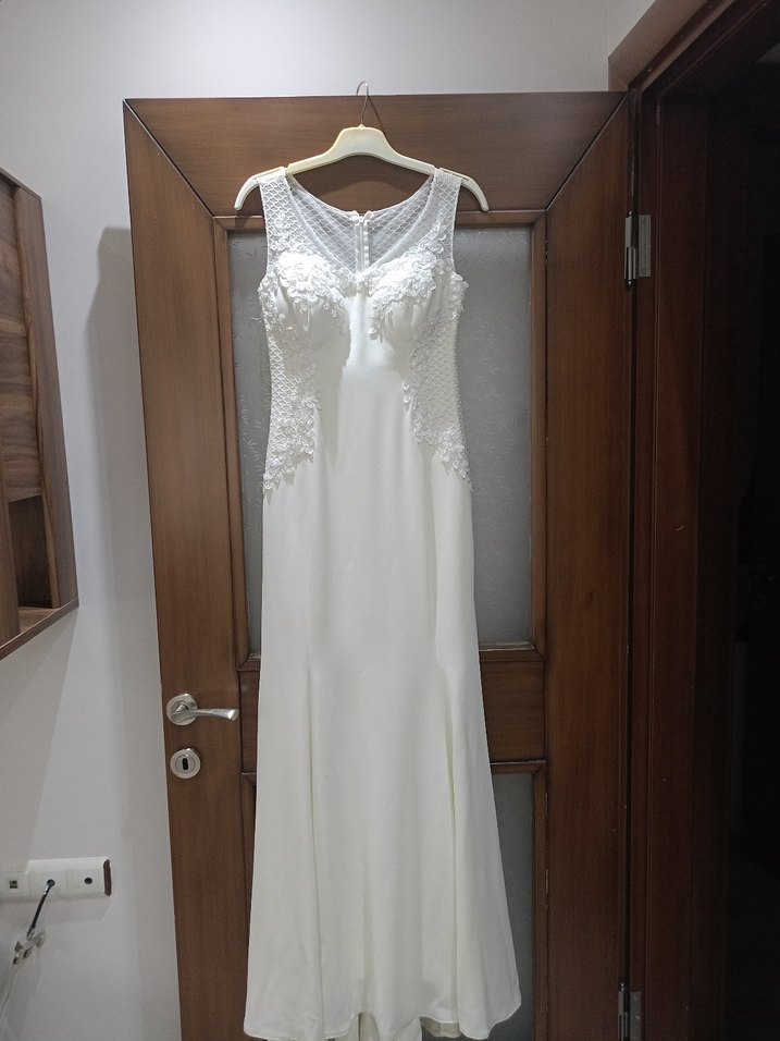 V Yaka Kolsuz beyaz nikah elbisesi