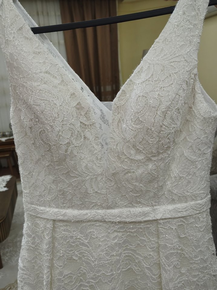 sadece bir defa giyildi , kuru temizleme yapıldı önden uzunluğu 148 cm arkadan biraz daha uzun