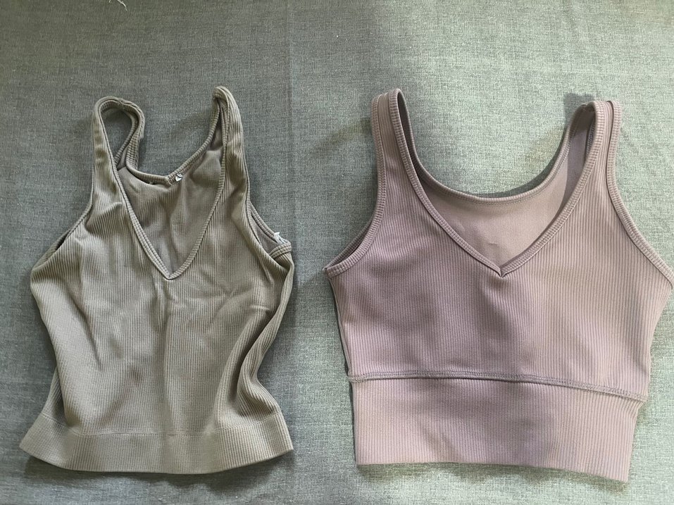 V yaka ve kolsuz, bej renkte, düz desenli, sentetik kumaştan, kısa kesim, rahat ve şık kadın crop