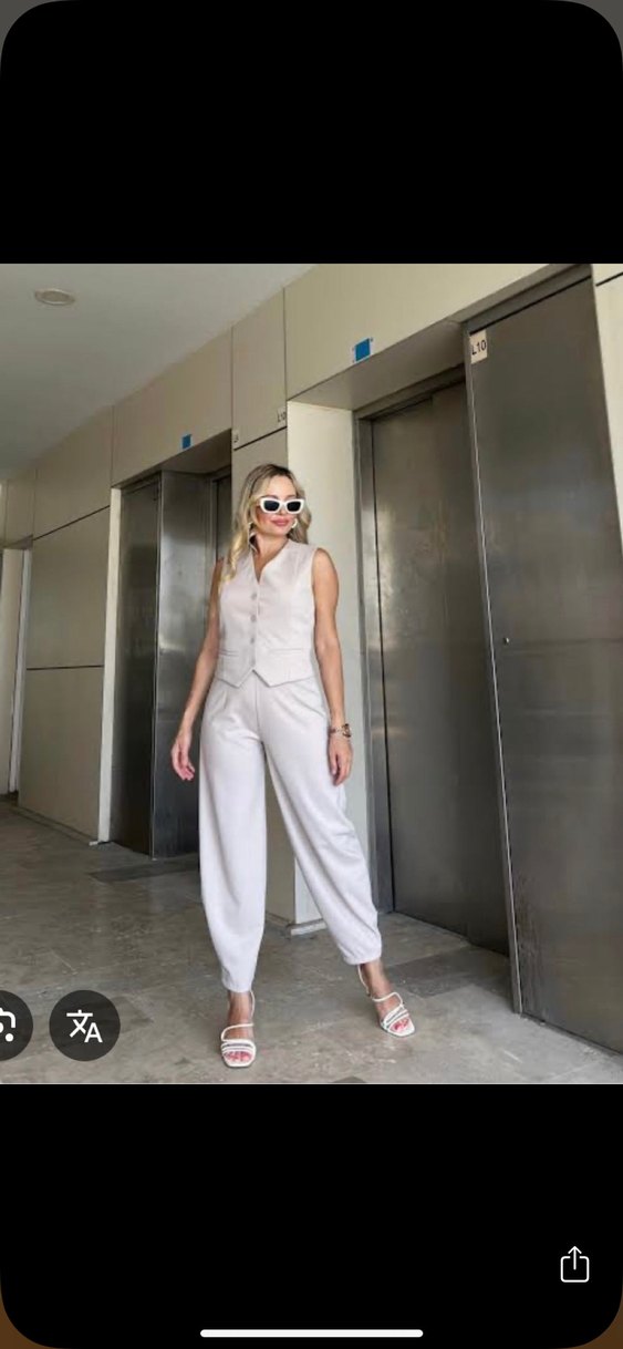 Kolsuz, V yakalı, midi boy keten tulum. Gri tonlarda, rahat kesim ve şık, minimal bir tasarım sunar. Ofis için uygun, zahmetsiz şıklık sağlar.