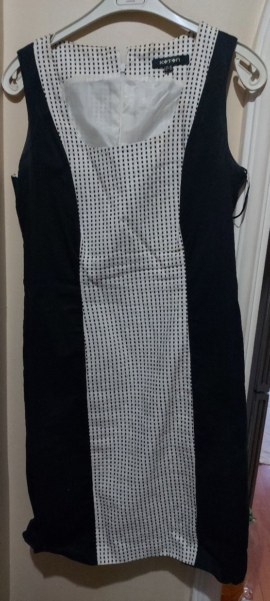 V yaka, kolsuz, pilili siyah ve gri midi kalem elbise. Ofis için uygun, regular fit ve gotik tarzda. içte astarda biraz yırtıklık var ama görünmüyor