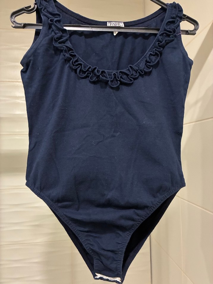 Lacivert renkli, V yaka ve fırfırlı detaylı, kolsuz, normal boyda vücuda oturan body. Rahat kullanım sağlar.