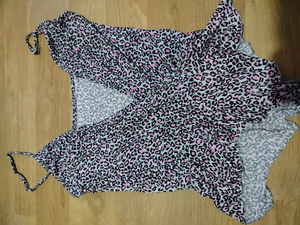 V Yaka Leopar Desen tulum altı fırfır döküm gecelik