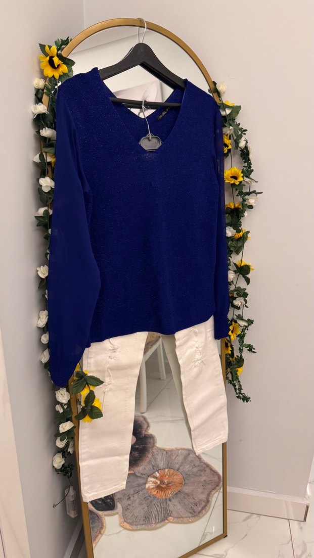 V Yaka Mavi baharlık triko Kadın Kazak