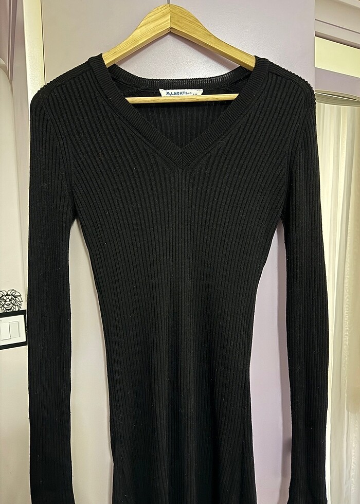 V yaka midi siyah elbise