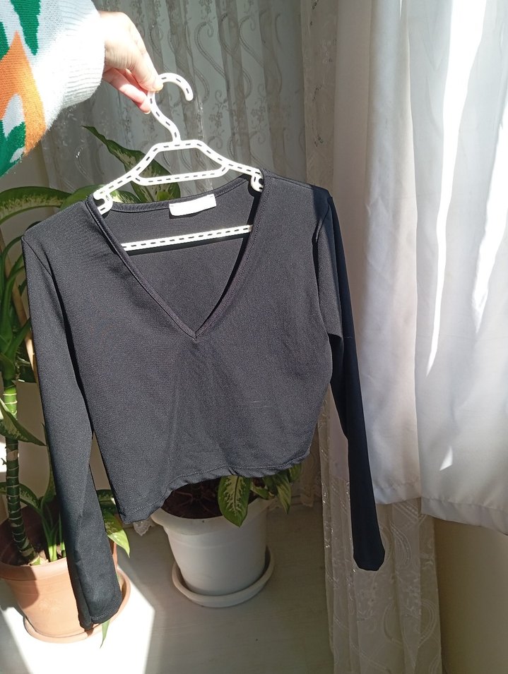 v yaka mini siyah üst kusursuz yeni beden l yazıyor ama SM