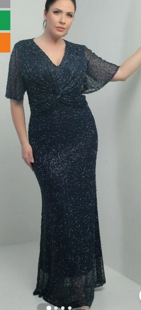 V Yaka Astarlı Önü Düğüm Detaylı Boru Boncuk İşlemeli Büyük Beden Uzun Abiye Elbise