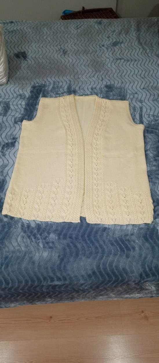 V yaka, kolsuz kadın yeleği, örgü kumaştan yapılmıştır. Düzenli kesim, rahat ve bohem tarzda, desensiz açık gri renkte, günlük kullanım için uygundur.