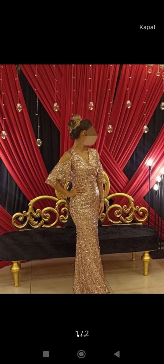 Bu v yaka, pudra Pembe tonuna kaçan payetli pullu uzun abiye elbise, modern klasik tarzda şık ve zarif bir görünüm sunar. ✨ ürünü 160 boy 57 kilo 14 cm topuklu ile giydim