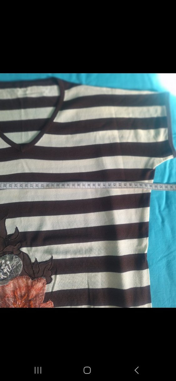 V yaka, kısa kollu, kahverengi çizgili .Elastik detaylı, bohem ve retro tarzda günlük kullanıma uygun.