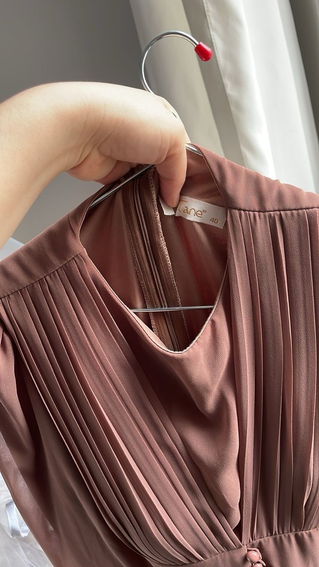 V yaka ve pileli tesettür elbise