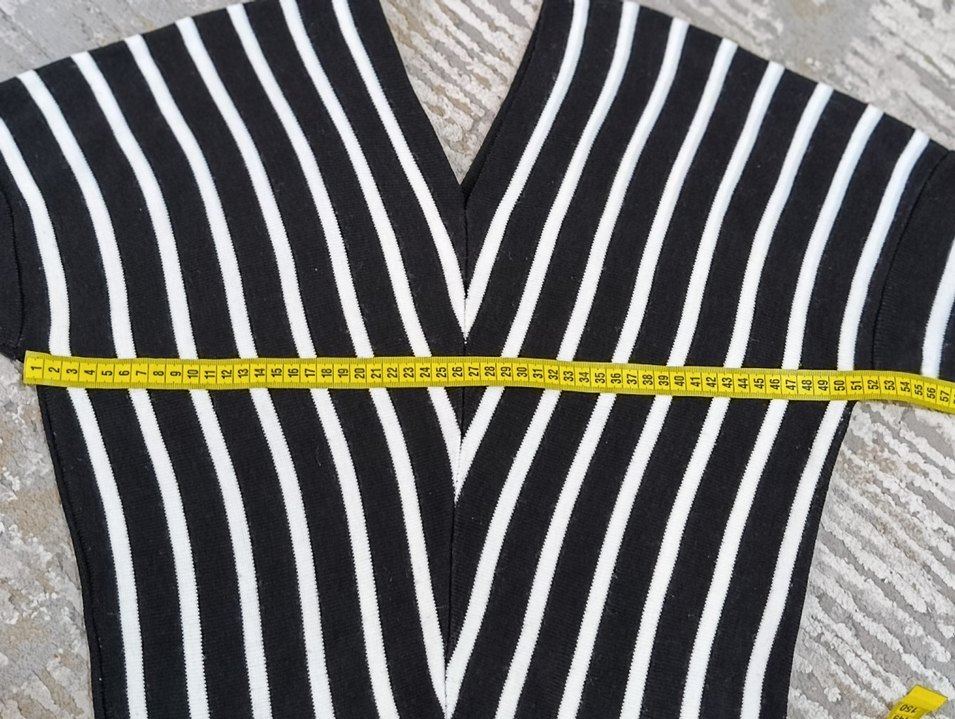 V yaka, siyah beyaz çizgili, yırtmaçlı ve sentetik kumaştan yapılmış, günlük sokak stili için uygun, vücuda oturan kadın üst