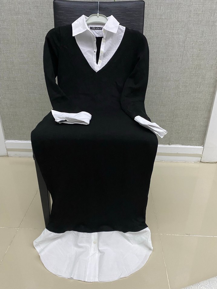 Şık Siyah-Beyaz Gömlek Detaylı Triko Elbise Zamansız siyah elbise, beyaz gömlek yaka ve manşet detaylarıyla hem klasik hem modern bir görünüm sunuyor. Ofis şıklığından günlük kombinlere kadar çok yönlü kullanım için ideal ✨ ✔️ Rahat kesim ✔️ Şık gömlek yaka detayı ✔️ Günlük / ofis / özel günlerde kullanılabilir ✔️ Temiz ve bakımlı, sorunsuz Topuklu ayakkabı ve çanta ile klasik, sneaker ile spor-şık kombinlenebilir Dolabımda yer açmak için uygun fiyata koyuyorum, kaçırmayın Ürünün yakasına kendim düğme için ilmek açtım çok profesyonel durmuyor orjinalinde yok fotolarda mevcut.. Az kullanıldı sıfır ayarında..40/42 beden yazsanda daha çok standart diyebiliyorum..Ölçü sorabilirsiniz..Rengin koyu yada açık oluşu ışık kaynaklıdır…