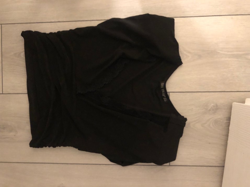 V yaka, kısa kollu, siyah. Yalnızca bir kez giydim