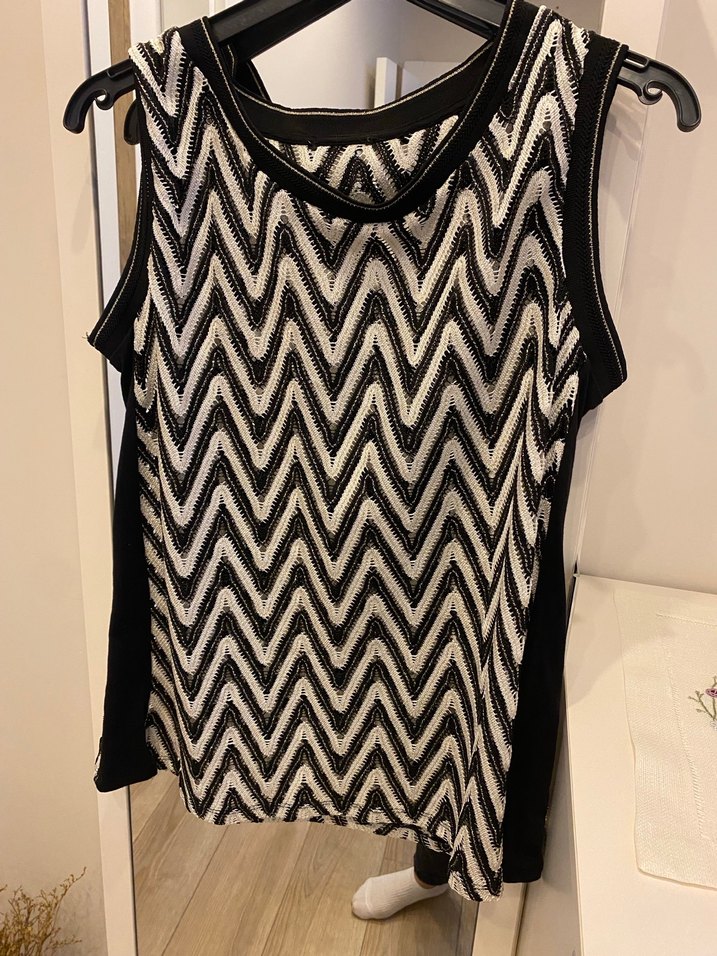 V Yaka Siyah Gri Örgü Desenli Kolsuz Bluz