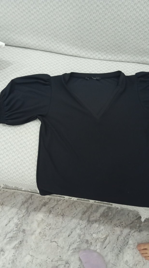 V yaka ve kısa kollu siyah hamile tişörtü, rahat ve bol kesimlidir. Minimalist sokak tarzıyla günlük kullanıma uygundur. Hafif ve yumuşak kumaştan üretilmiştir.