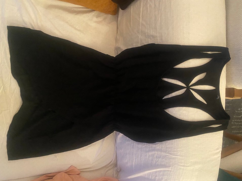 V yaka, askılı kollu, saten görünümlü siyah kadın elbise. Midi boy ve yırtmaç detayıyla gotik tarzı yansıtır.