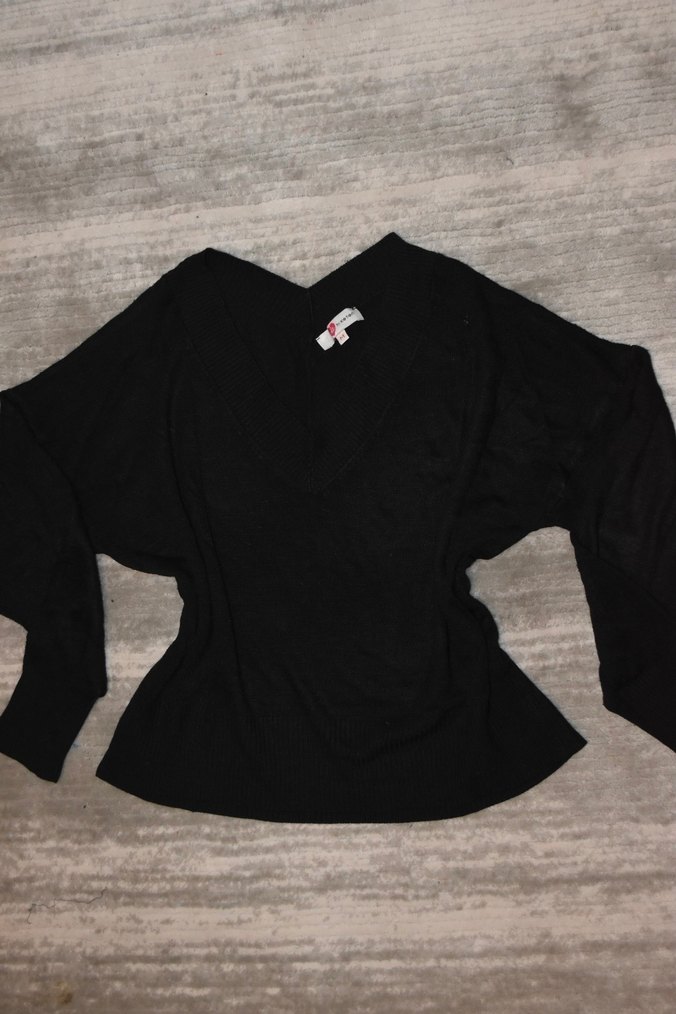 Siyah kadın sweatshirt, V yaka ve uzun kolludur. Yumuşak ve sıcak kumaştan üretilmiş, rahat ve şık bir görünüm sunar.