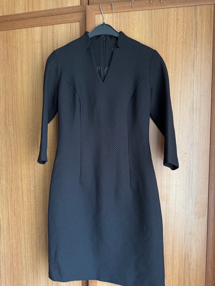 V Yaka Siyah Midi Ofis Elbisesi