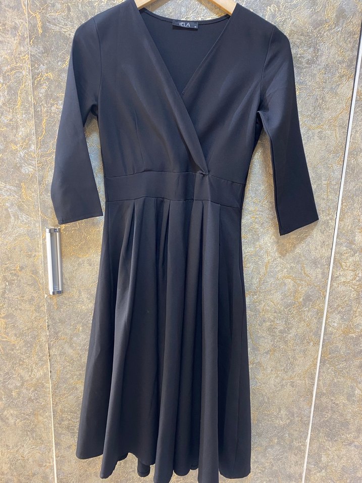 V Yaka Siyah Uzun Klasik Elbise