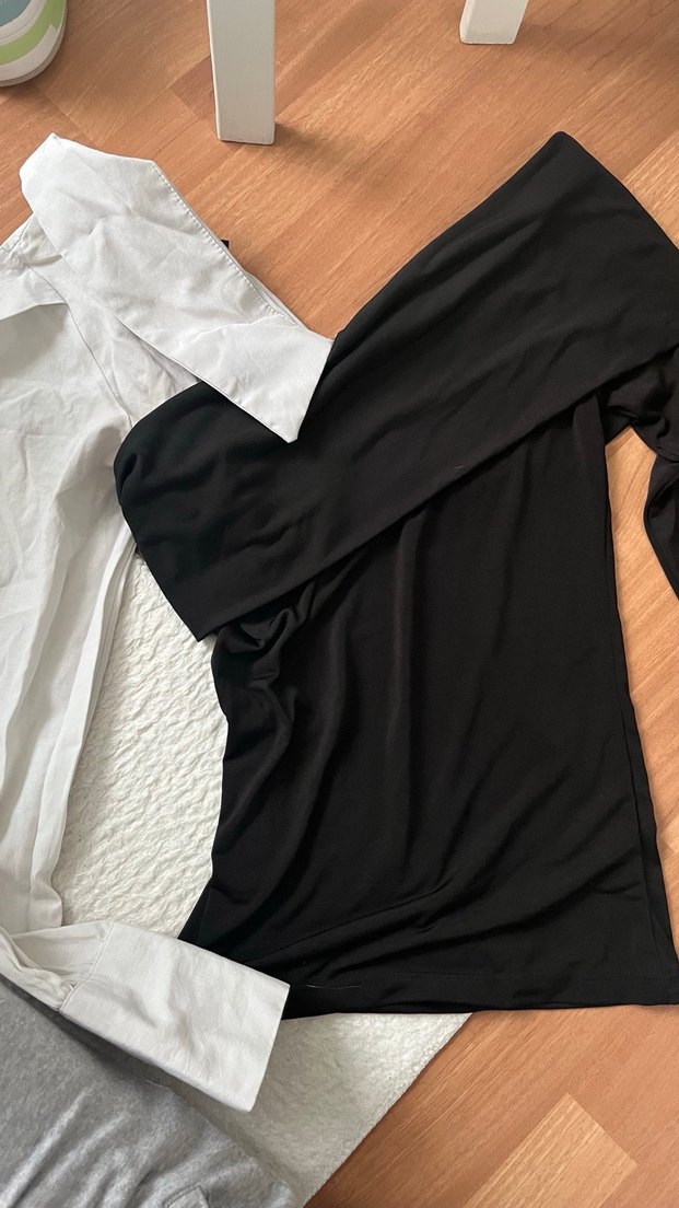 V Yaka Siyah Uzun Kollu bluz asimetrik