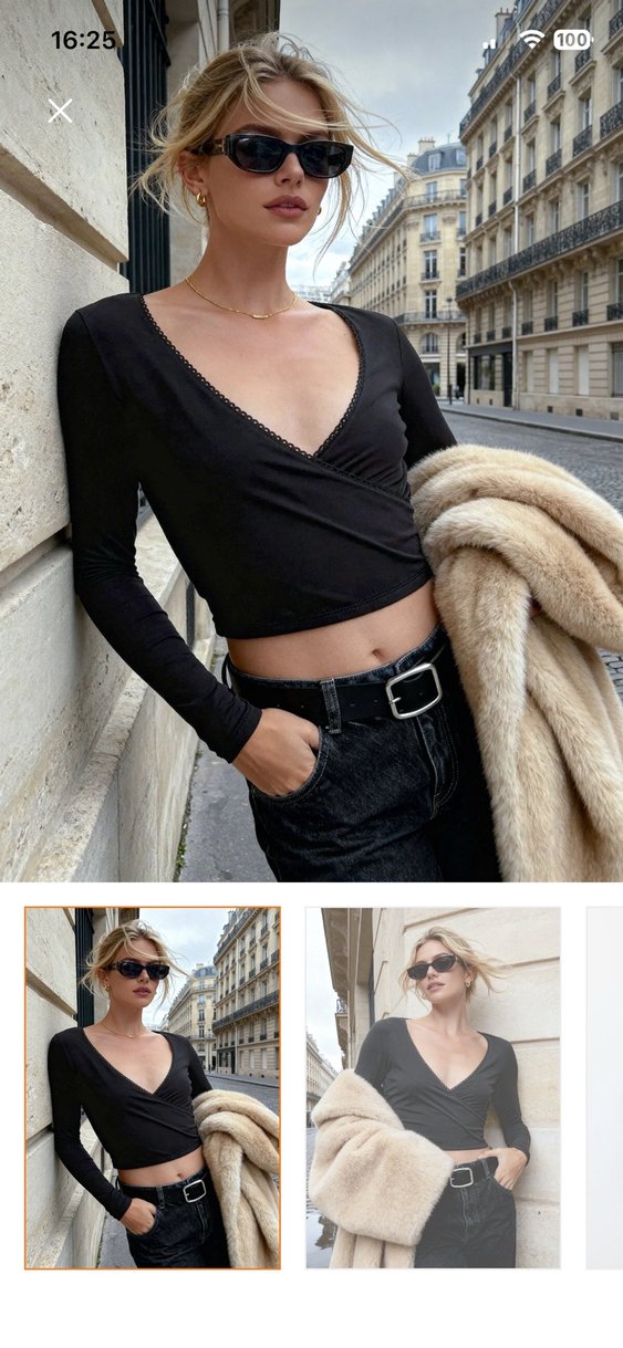 V yaka ve uzun kollu, düz siyah bluz. Sentetik kumaştan, kürk detaylı, sokak modasına uygun.