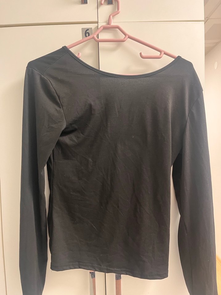 V Yaka Siyah Uzun Kollu Kadın Bluz sırtı açık