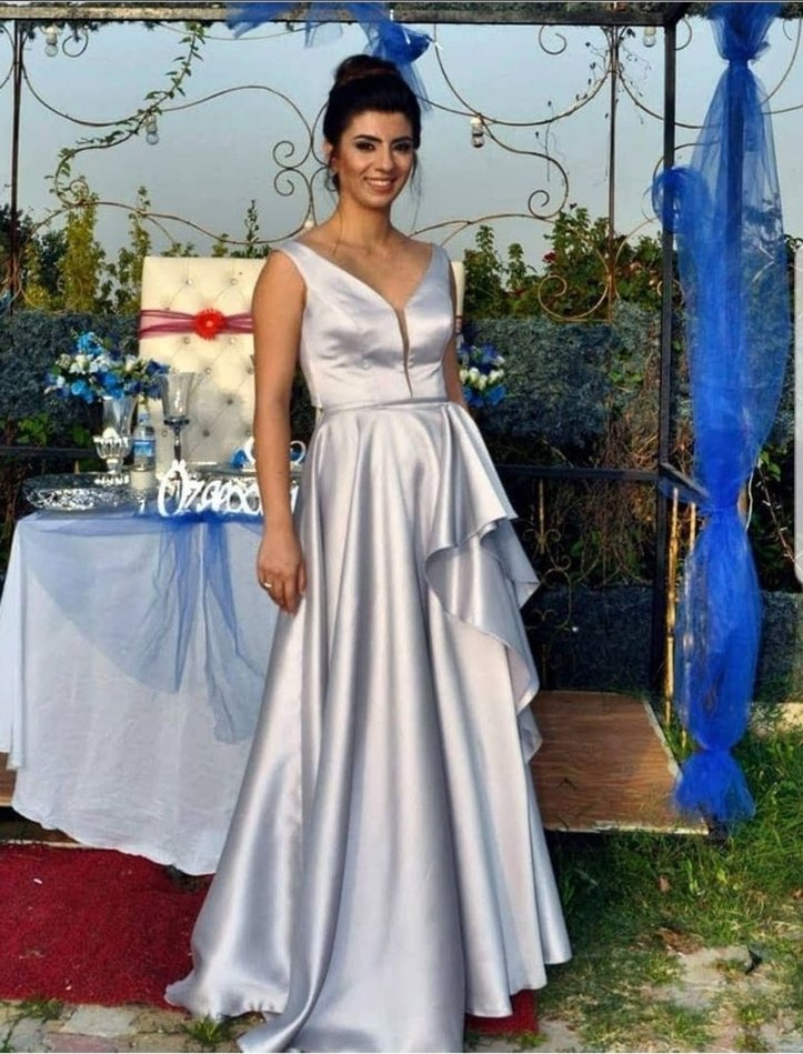 V Yaka Uzun Abiye Elbise