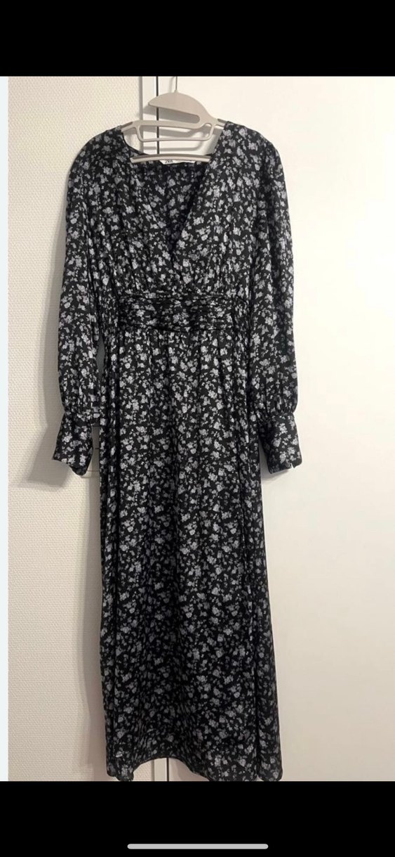 uzun kollu ve V yakalı, bol kesim uzun kadın elbisesi. Yumuşak sentetik kumaştan, batik desenli ve drapeli detaylara sahip, bohem ve retro tarzda. Saten kumaştan, yakasını ve yırtmacını kapattırdım. Kilo aldığım için bana olmadı o yüzden satıyorum. Etiketi ile duruyor. Hiç kullanılmadı.