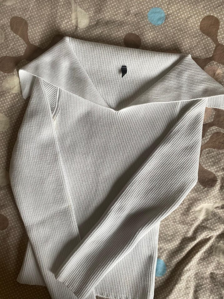 V Yaka Uzun Kollu Beyaz Triko Kadın Kazak