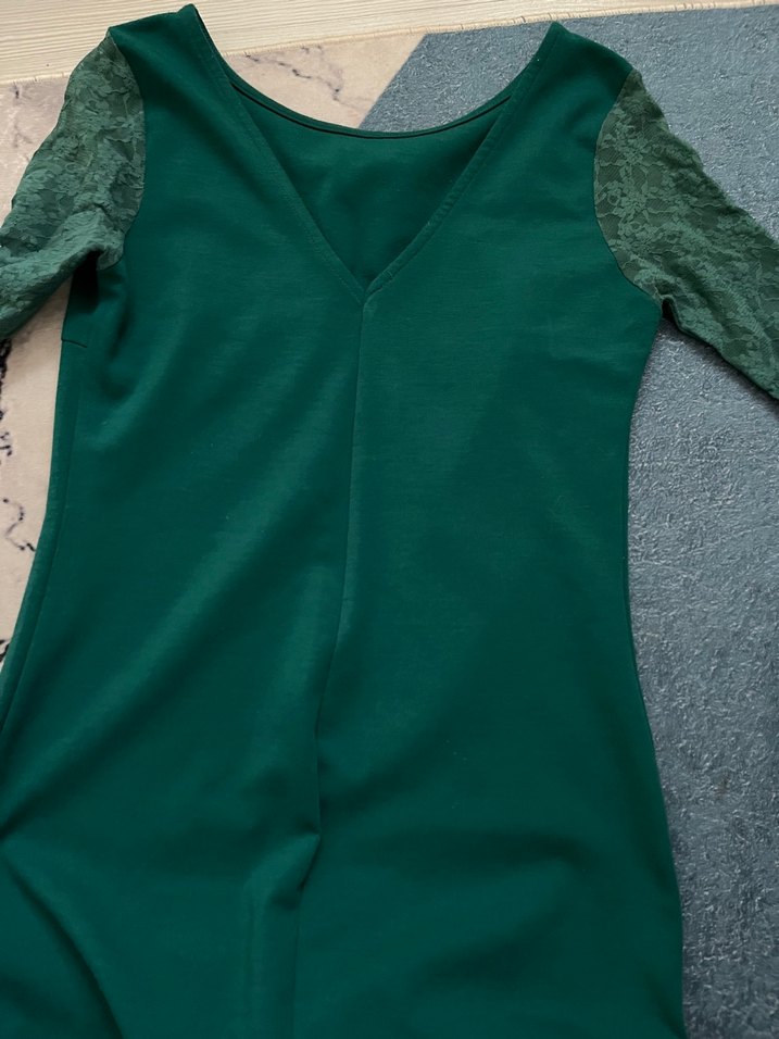 V Yaka Yeşil elbise
