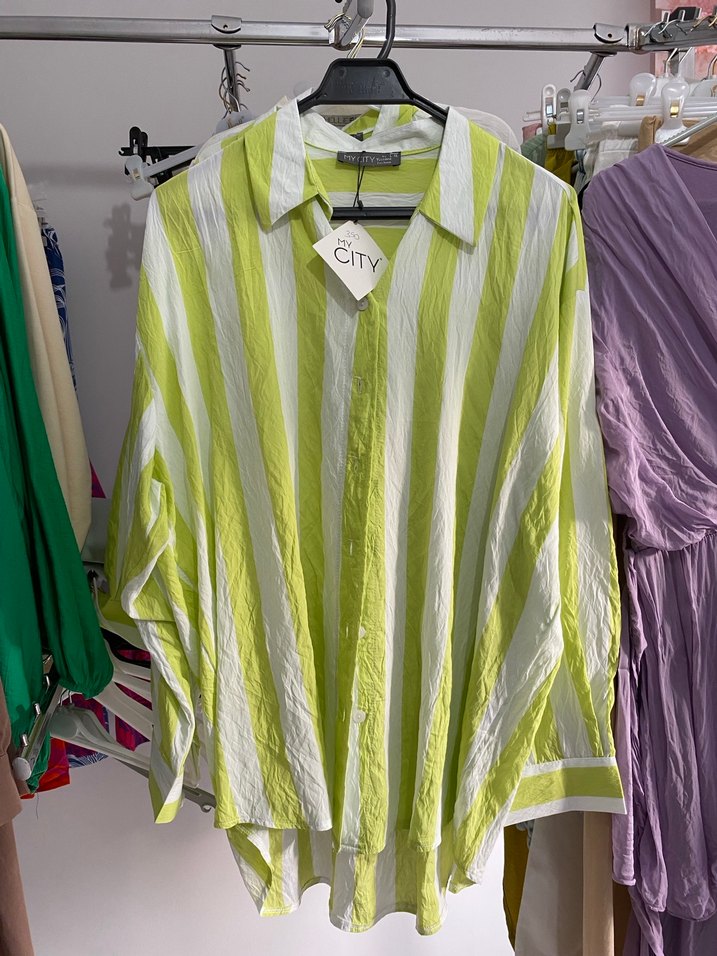 Yeşil, piliseli mini gömlek, V yaka ve uzun kollu. Hafif keten kumaştan, rahat salaş kesim, gündelik sokak stili için uygun. Mağaza ürünüdür sıfır ürün etiketli defosuz mağazayı kapattığımız için kalan ürünleri alış fiyatına satıyoruz daha uygununu assssla bulamazsınız