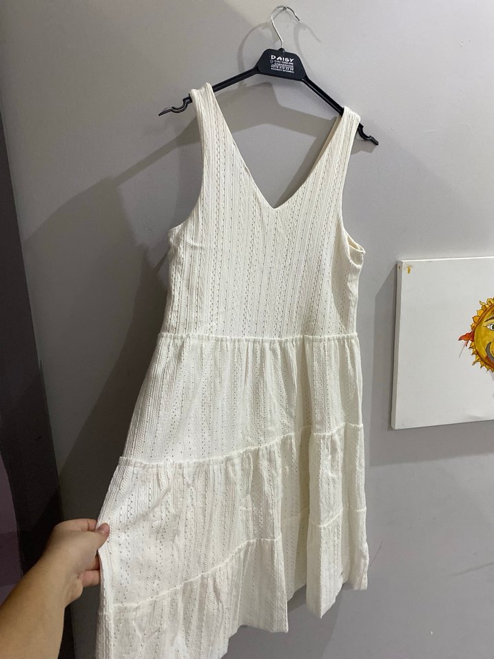 Bodrumda bir butikten almıştım alırken dikkat etmedim siyah bir leke var eteğinde fotoğraf ta belirttim hiç giyemedim nasip olmadı sıfır ürün alana katkı olsun