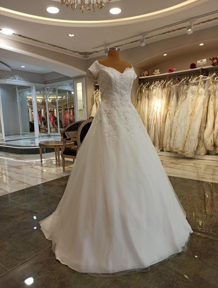 Kısa kollu ve V yakalı bu beyaz A kesim gelinlik, modern klasik tarzda, dantel detaylı uzun etekli ve klasik şıklık sunan regular kesimdir. Kalıp türü: NORMAL Herhangi bir defolu durum yok, bir kere kullanılmıştır. Renk: Çok iyi durumda, kullanım yapılmıştır. Ürün etiketi üzerinde mevcut bulunmamaktadır. BEDEN: 38-40 beden Maddi durumu olmayana yardımcı olunur. Tartarı mevcut. Duvağı ve tacı yok. #abiye #elbise #moda #butik #giyim #düğün #yenisezon #nişan #fashion #mezuniyet #trend #kombin #bayangiyim #kına #elbisemodelleri #tarz #abiyemodelleri #abiyeelbise #trend #sosyalmedya #siparis #populer #gerikazanım