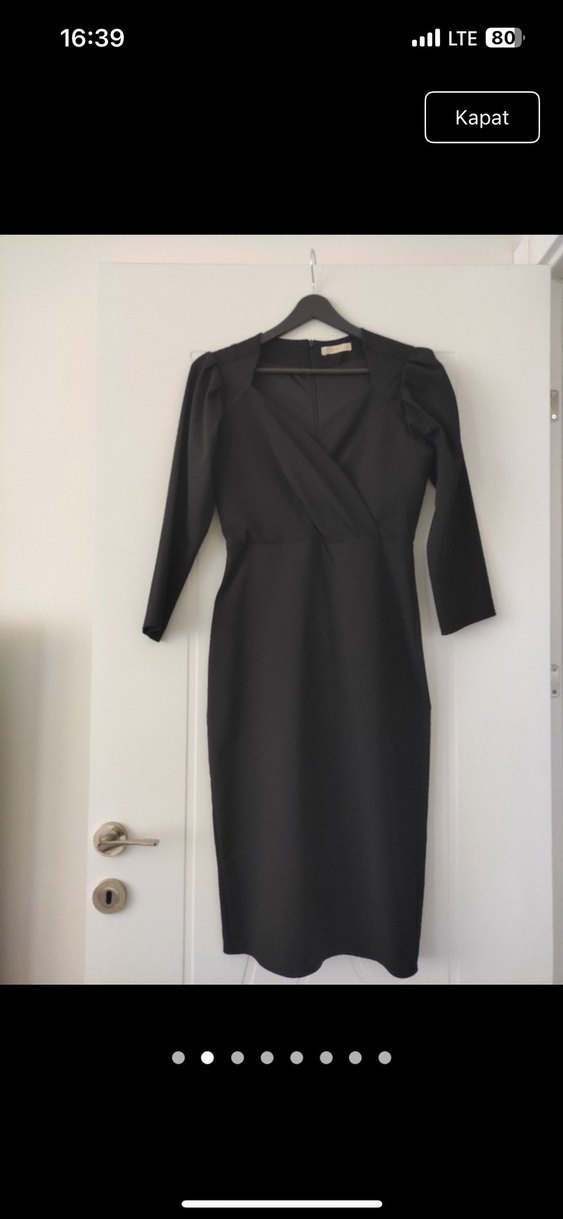 V yakalı, drapeli detaylara sahip siyah midi elbise, Sadece 2 kere giyildi hiçbir sorunu yok kemer ile de kullanılabilir kemer yeri yok s beden ama m ve l beden içinde uygun