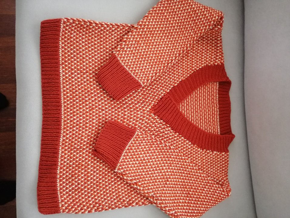 Örgü örüp satıyorum. Farklı model için mesaj atabilirsiniz. Renkli örme dokusu, V yaka ve uzun kollu rahat ve modern tarzda, günlük kullanım için uygundur. Kiremit renktir.
