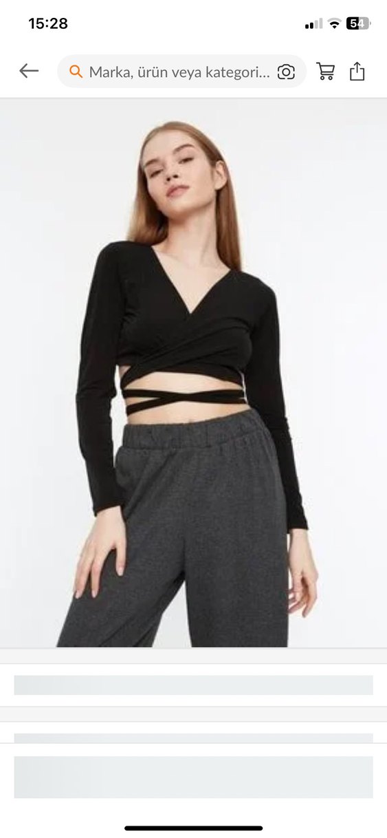 V yakalı, uzun kollu ve kısa kesim siyah bluz, yumuşak sentetik kumaştan. Bel kısmında bağlama detaylarıyla rahat ve şık bir görünüm sağlar.