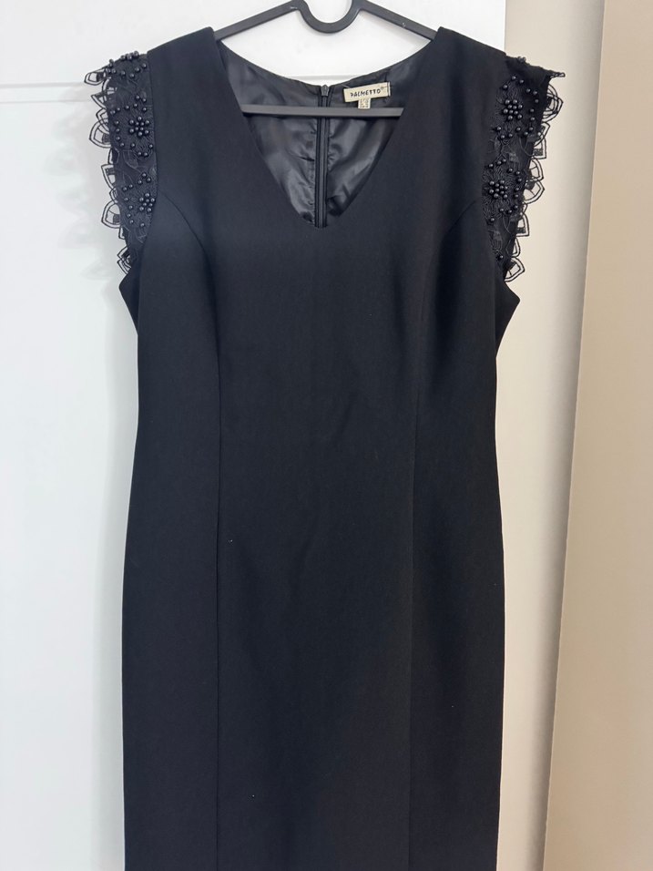 V Yakalı Siyah Midi Elbise
